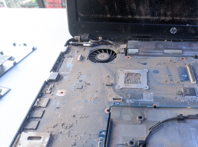 Cuando el cliente nos trajo su laptop, notamos que la misma se encontraba bastante sucia con polvo y que la base de la bisagra derecha se había desplazado de su lugar. De inmediato, procedimos a desmontar la laptop y realizar una inspección minuciosa para determinar la causa del problema y encontrar la mejor solución.