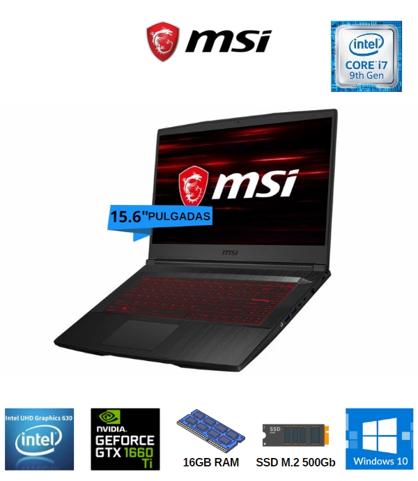 Te presentamos el portátil GF65 Thin de MSI, un portátil gaming con procesador Intel Core i7 de 9na Generación con tarjeta Nvidia GeForce GTX 1660Ti.. Delgado y luminoso, Disfruta de una gran pantalla de 15 "en un chasis compacto. Últimos procesadores de 9ª Gen de Intel HEXA-Cores: Obtiene una mejora del rendimiento sobre las generación anterior con los núcleos adicionales. NVIDIA Geforce serie GTX 10: Disfruta de hasta un 40% más de rendimiento. Gráficos GTX 1660Ti, aumentando de manera efectiva el conteo de fps.